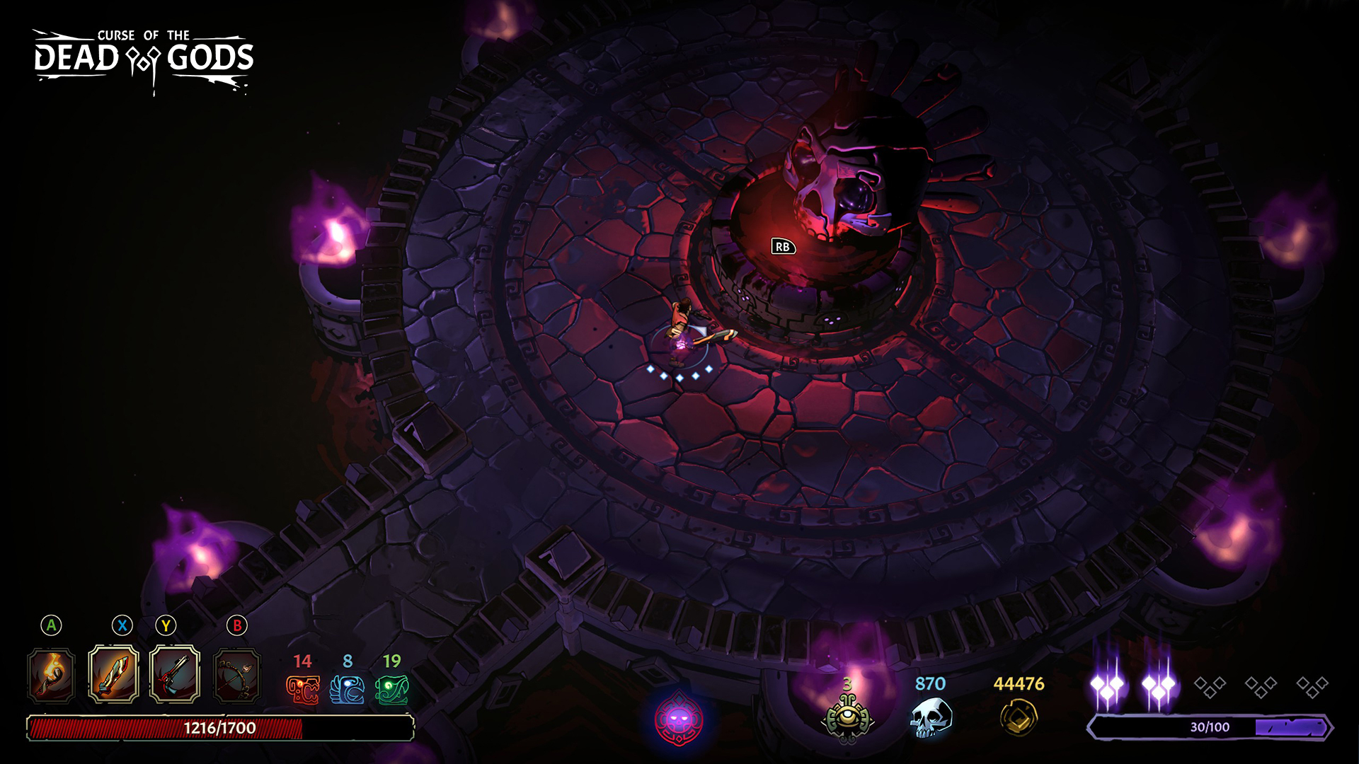 Curse of the Dead Gods est disponible en Accès Anticipé Steam sur PC et arrive prochainement sur consoles.
